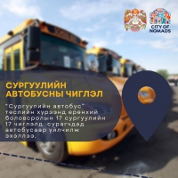 "Сургуулийн автобус" төслийн хүрээнд ерөнхий боловсролын 17 сургуулийн 17 чиглэлд сурагчдад автобусаар үйлчилж эхэллээ. "Сургуулийн автобус" төслийн хүрээнд ерөнхий боловсролын 17 сургуулийн 17 чиглэлд сурагчдад автобусаар үйлчилж эхэллээ.