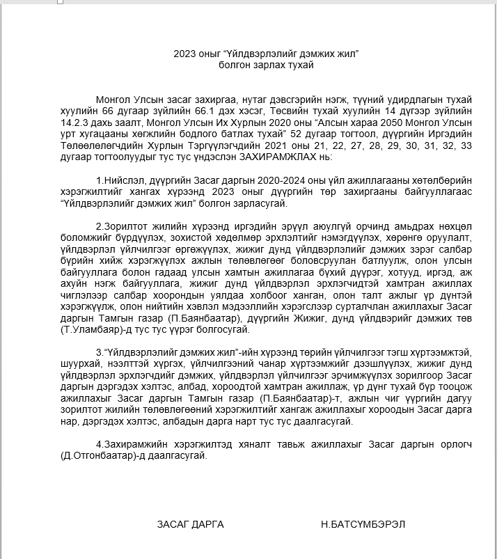 2023 оныг "Үйлдвэрлэлийг дэмжих жил" болгон зарлах тухай