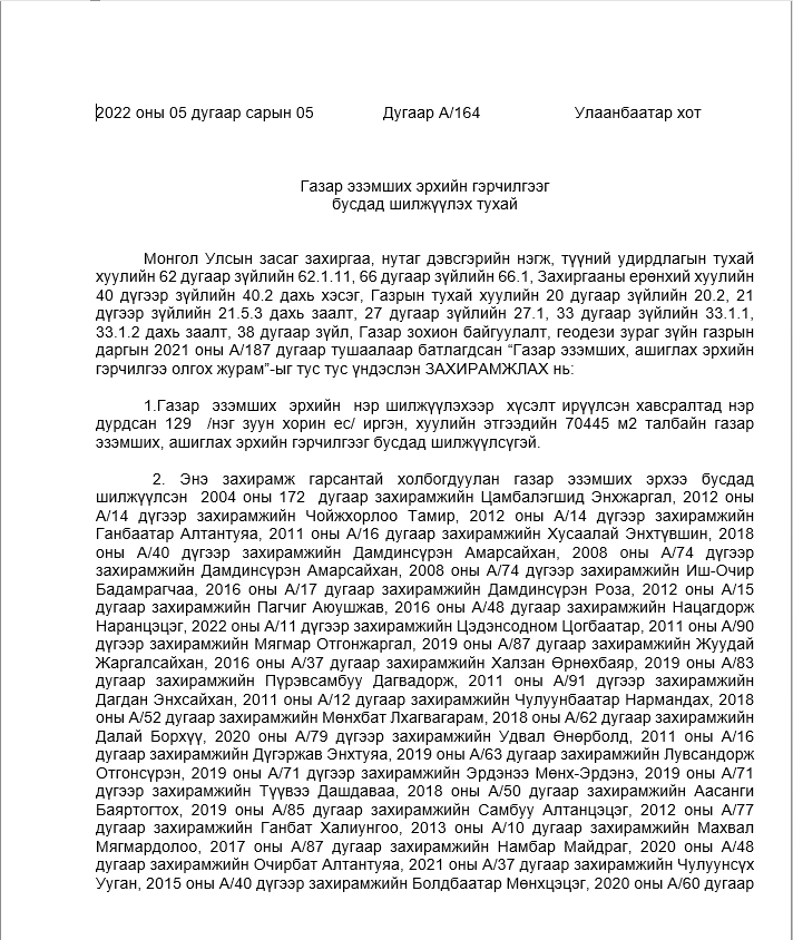 ГАЗАР ЭЗЭМШИХ ЭРХИЙН ГЭРЧИЛГЭЭГ БУСДАД ШИЛЖҮҮЛЭХ ТУХАЙ