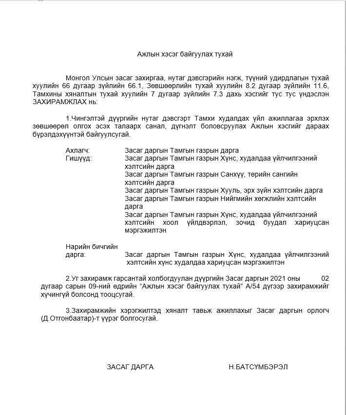 АЖЛЫН ХЭСЭГ БАЙГУУЛАХ ТУХАЙ
