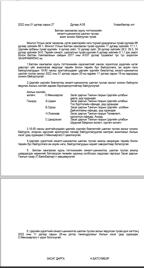 БАТЛАН ХАМГААЛАХ ХУУЛЬ ТОГТООМЖИЙН ХЯНАЛТ-ШИНЖИЛГЭЭ ШАЛГАН ТУСЛАХ АЖИЛ ЗОХИОН БАЙГУУЛАХ ТУХАЙ