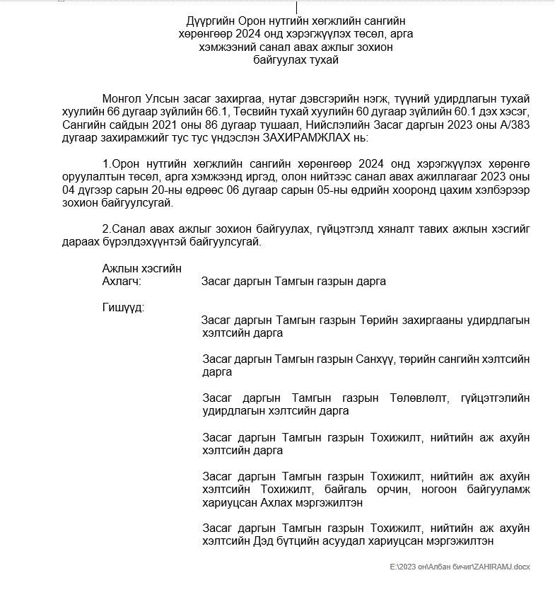 Дүүргийн Орон нутгийн хөгжлийн сангийн хөрөнгөөр 2024 онд хэрэгжүүлэх төсөл, арга хэмжээний санал авах ажлыг зохион байгуулах тухай