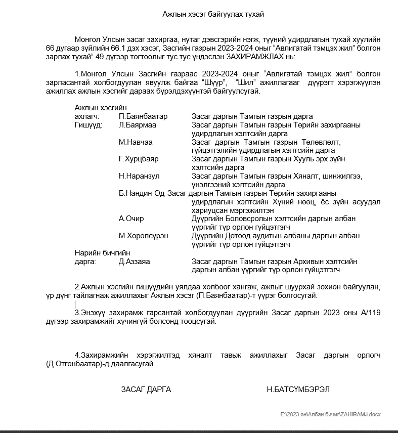 Ажлын хэсэг байгуулах тухай