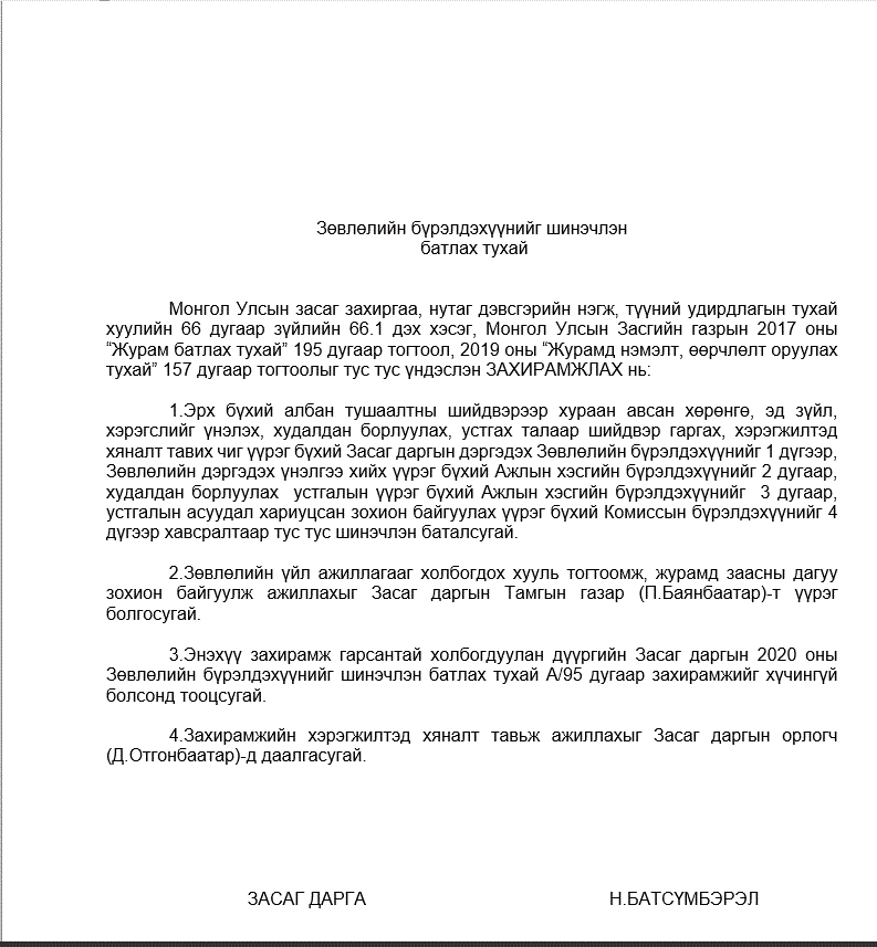 Зөвлөлийн бүрэлдэхүүнийг шинэчлэн батлах тухай