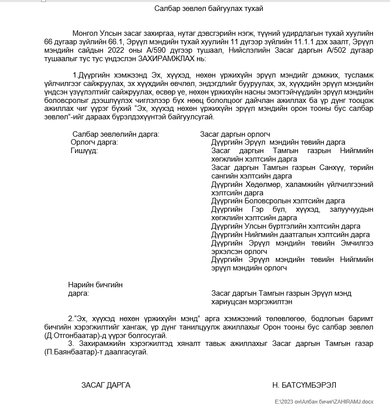 Салбар зөвлөл байгуулах тухай