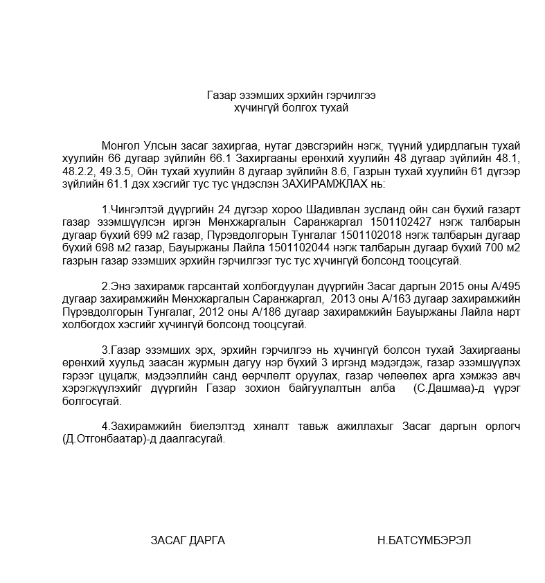 Газар эзэмших эрхийн гэрчилгээ хүчингүй болгох тухай