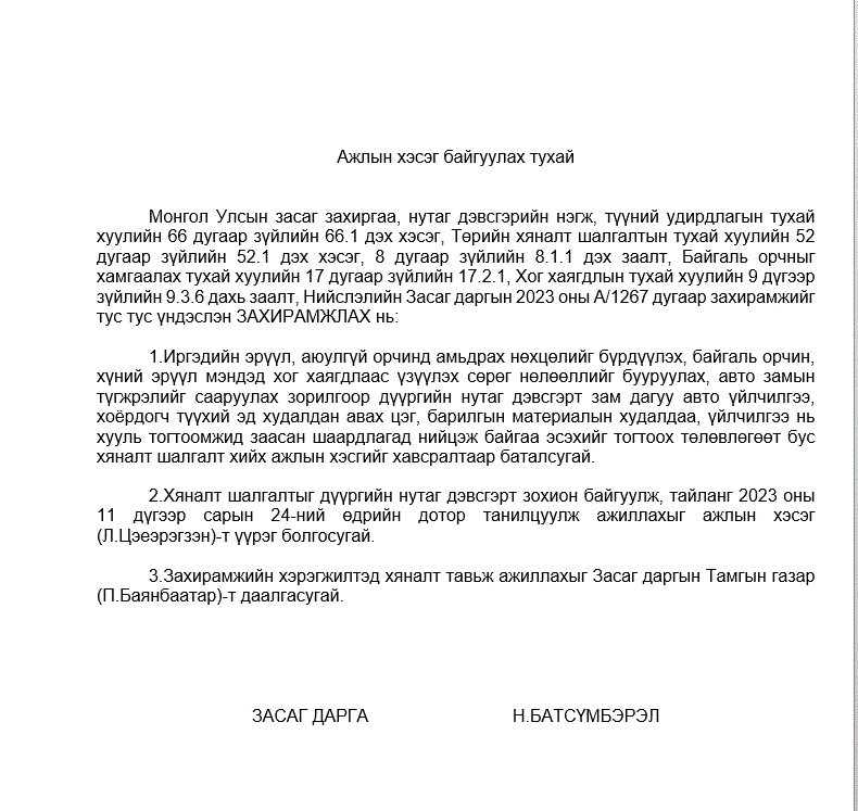 Ажлын хэсэг байгуулах тухай