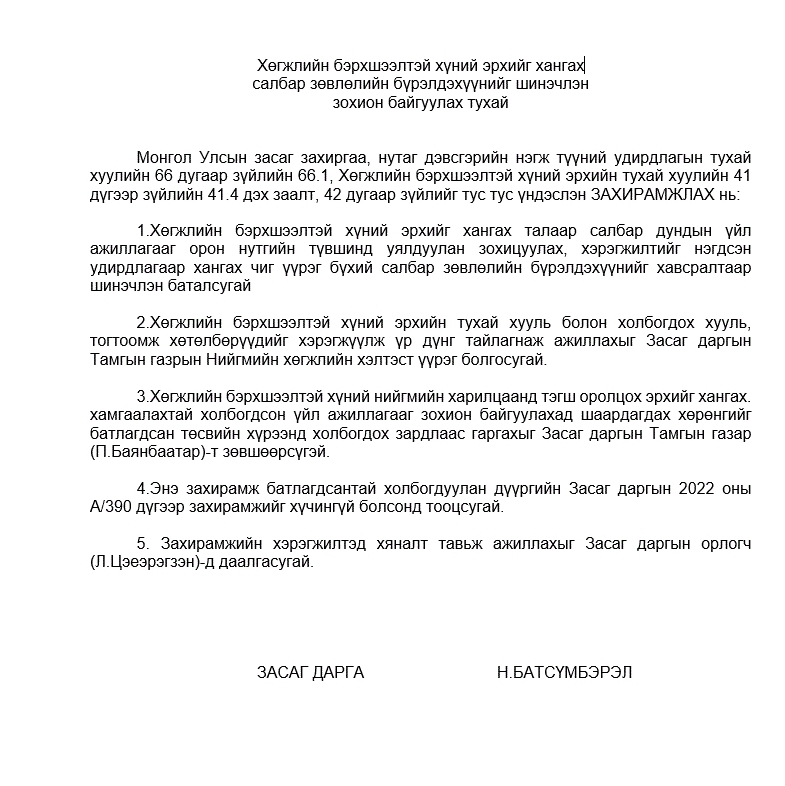 Хөгжлийн бэрхшээлтэй хүний эрхийг хангах салбар зөвлөлийн бүрэлдэхүүнийг шинэчлэн зохион байгуулах тухай