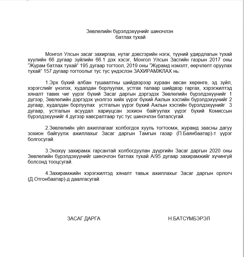 ЗӨВЛӨЛИЙН БҮРЭЛДЭХҮҮНИЙГ ШИНЭЧЛЭН БАТЛАХ ТУХАЙ