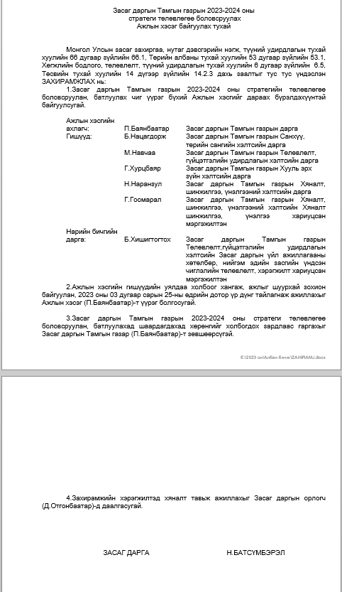 ЗАСАГ ДАРГЫН ТАМГЫН ГАЗРЫН 2023-2024 ОНЫ СТРАТЕГИ ТӨЛӨВЛӨГӨӨ БОЛОВСРУУЛАХ АЖЛЫН ХЭСЭГ БАЙГУУЛАХ ТУХАЙ