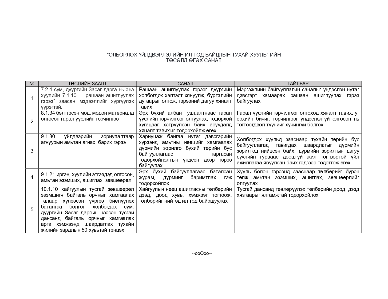 “ОЛБОРЛОХ ҮЙЛДВЭРЛЭЛИЙН ИЛ ТОД БАЙДЛЫН ТУХАЙ ХУУЛЬ”-ИЙН ТӨСӨЛД ӨГӨХ САНАЛ
