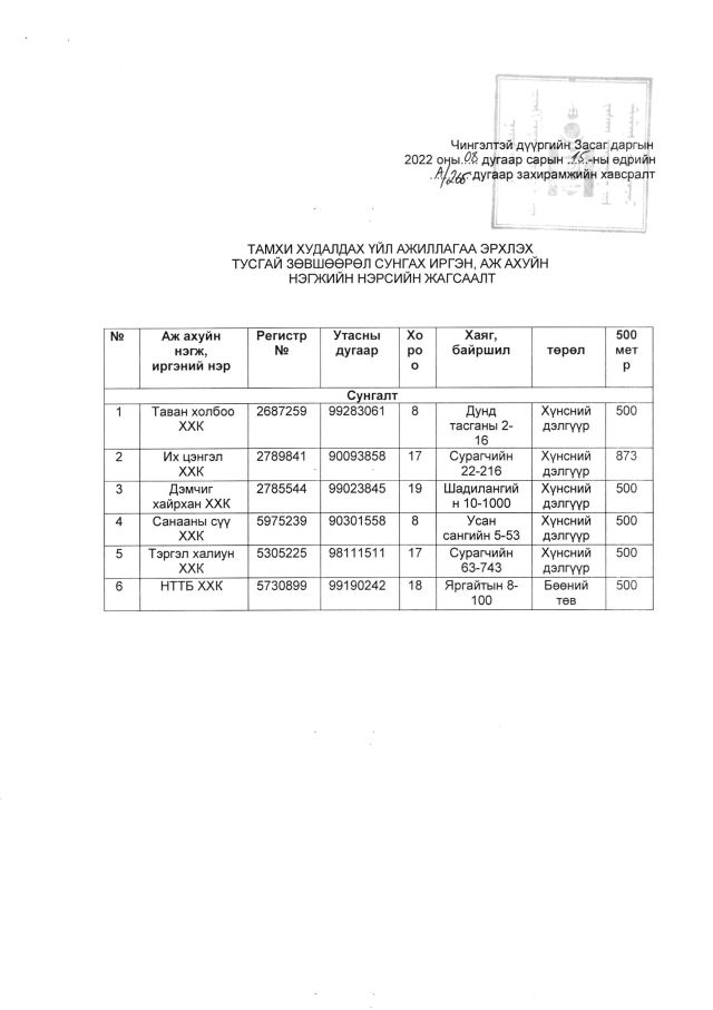Тамхи худалдах үйл ажиллагаа эрхлэх тусгай зөвшөөрөл сунгах тухай