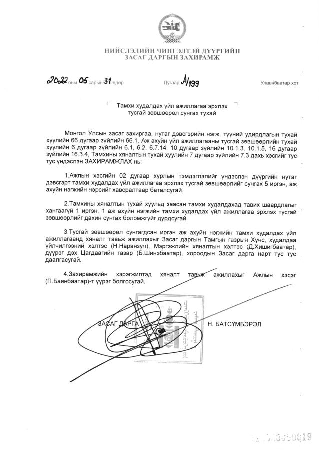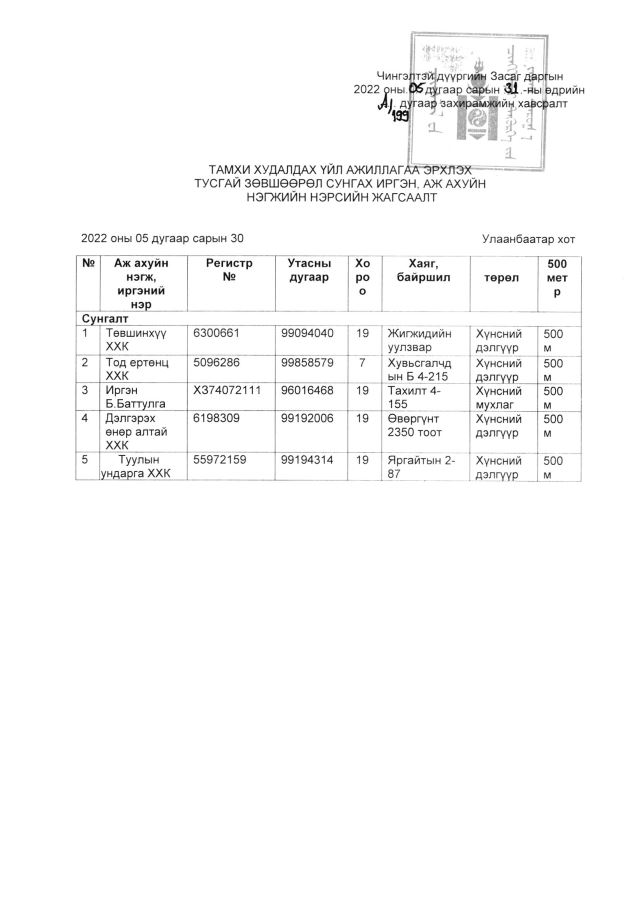 Тамхи худалдах үйл ажиллагаа эрхлэх тусгай зөвшөөрөл сунгах тухай