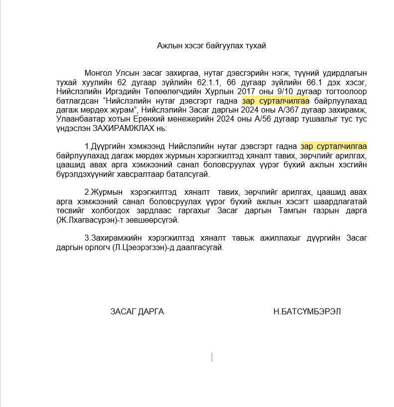 АХМАДЫН ЗУУН БУУДАЛТ ДААМНЫ АВАРГА ШАЛГАРУУЛАХ ТЭМЦЭЭН БОЛЛОО11 сар 12. 9:49АНХНЫ ТУСЛАМЖИЙН НИЙСЛЭЛИЙН АВАРГА ШАЛГАРУУЛАХ УРАЛДААН БОЛЛОО11 сар 11. 9:16ХҮН АМ, ОРОН СУУЦНЫ 2025 ОНЫ ЗАВСРЫН ТООЛЛОГЫН ТОДРУУЛГА ЭХЭЛЛЭЭ11 сар 10. 9:28ДҮҮРГИЙН ХЭМЖЭЭНД ЦАС ТҮРЭХ, ЗАМ ТАЛБАЙН ЦЭВЭРЛЭГЭЭНИЙ АЖИЛ ТОГТМОЛ ХИЙГДЭЖ БАЙНА11 сар 8. 9:28ДҮҮРГИЙН УДИРДЛАГУУД 6,8 ДУГААР ХОРООНД АЖИЛЛАЛАА11 сар 6. 11:37ДҮҮРГИЙН ХЭМЖЭЭНД АВТО ЗАСВАР, ҮЙЛЧИЛГЭЭНИЙ ГАЗРУУДЫН ҮЙЛ АЖИЛЛАГААНД ХЯНАЛТ ШАЛГАЛТ ХИЙЖ БАЙНА11 сар 6. 9:49“БАЙГУУЛЛАГЫН ГҮЙЦЭТГЭЛИЙН ТӨЛӨВЛӨГӨӨ БОЛОВСРУУЛАХ, ТАЙЛАГНАХ АРГА ЗҮЙ” СЭДЭВТ СУРГАЛТ ЗОХИОН БАЙГУУЛАГДЛАА11 сар 6. 9:46ЧИНГЭЛТЭЙ ДҮҮРГИЙН 13-Р ХОРООНД БАЙРЛАХ 49 ДҮГЭЭР СУРГУУЛЬ НАРНЫ ЭРЧИМ ХҮЧЭЭР ЦАХИЛГААНАА БҮРЭН ХАНГАХ АНХНЫ ЖИШИГ СУРГУУЛЬ БОЛНО11 сар 6. 9:43СУРГУУЛЬ, ЦЭЦЭРЛЭГИЙН БАРИЛГА БАЙГУУЛАМЖ БА ОРЧНЫ АЮУЛГҮЙ БАЙДАЛ СЭДЭВТ СУРГАЛТ БОЛЛОО11 сар 5. 9:52ЧИНГЭЛТЭЙ ДҮҮРЭГ АНГИЛАН ЯЛГАСАН ХОГ ХАЯГДЛЫГ ЭДИЙН ЗАСГИЙН ЭРГЭЛТЭД ОРУУЛАХ ТӨВЛӨРСӨН БАЙГУУЛАМЖТАЙ БОЛЛОО11 сар 4. 9:54АЗИЙН ХӨГЖЛИЙН БАНКНЫ САНХҮҮЖИЛТЭЭР ДҮҮРГИЙН 10 ДУГААР ХОРООНД БАРИГДАХ НЭГДСЭН ЭМНЭЛГИЙН ТӨСӨЛ ҮРГЭЛЖИЛЖ БАЙНА10 сар 30. 11:25НИЙСЛЭЛ УЛААНБААТАР ХОТЫН 386 ЖИЛИЙН ОЙГ ТОХИОЛДУУЛАН ЧИНГЭЛТЭЙ ДҮҮРГИЙН ТӨРИЙН АЛБАН ХААГЧДЫН X ДАХЬ УДААГИЙН “БОДЛОГЫН УУЛЗАЛТ” ЗОХИОН БАЙГУУЛАГДЛАА10 сар 29. 11:37ЧИНГЭЛТЭЙ ДҮҮРГИЙН ХӨДӨЛМӨРИЙН ЭРХИЙН МАРГААН ЗОХИЦУУЛАХ ГУРВАН ТАЛТ ХОРООНЫ ЭЭЛЖИТ ХУРАЛ БОЛЛОО10 сар 29. 11:34ЧИНГЭЛТЭЙ ДҮҮРГИЙН 10,20 ДУГААР ХОРОО ᠌"MAGIC BOX" ЗӨӨВРИЙН НОМЫН САНТАЙ БОЛНО10 сар 29. 11:28СУРГУУЛЬ, ЦЭЦЭРЛЭГИЙН АНГИ ТАНХИМЫН ДОТОР АГААРЫН ЧАНАРЫГ САЙЖРУУЛАХ АГААР СЭЛГЭЛТИЙН ТӨХӨӨРӨМЖИЙГ СУУРИЛУУЛЖ ЭХЭЛЛЭЭ10 сар 28. 11:39ЧИНГЭЛТЭЙ ДҮҮРГИЙН 4 ДҮГЭЭР ХОРООНЫ НЭРЭМЖИТ ГРАУНД ГОЛФИЙН ТЭМЦЭЭН ЗОХИОН БАЙГУУЛАГДЛАА10 сар 27. 16:472024 ОНЫ II ЭЭЛЖИЙН ЦЭРЭГТ ТАТАГДСАН ЗАЛУУС ХУГАЦААТ ЦЭРГИЙН АЛБАА АМЖИЛТТАЙ ХААГААД ИРЛЭЭ10 сар 22. 14:51ХОТЫН ДАРГА Х.НЯМБААТАР ЧИНГЭЛТЭЙ ДҮҮРЭГТ ХЭРЭГЖИЖ БУЙ "ДУЛААЛЪЯ" АЯНЫ АЖЛЫН ЯВЦТАЙ ТАНИЛЦЛАА10 сар 21. 14:40ЧИНГЭЛТЭЙ ДҮҮРЭГ ᠌᠌᠌"CОЁЛ ТҮГЭЭЕ᠌᠌" АЯНД НЭГДЛЭЭ10 сар 20. 14:31ЧИНГЭЛТЭЙ ДҮҮРГИЙН ХЭМЖЭЭНД 2025 ОНЫ II ЭЭЛЖИЙН ЦЭРЭГ ТАТЛАГА ЭХЭЛЛЭЭ10 сар 18. 14:37НИЙГМИЙН ХАРИУЦЛАГЫН ХҮРЭЭНД 1000 МОД ХАНДИВЛАСАН АЖ АХУЙН НЭГЖҮҮДЭД ТАЛАРХАЛ ГАРДУУЛЛАА10 сар 17. 14:40ЧИНГЭЛТЭЙ ДҮҮРГИЙН ЗАСАГ ДАРГЫН ТАМГЫН ГАЗРЫН АЛБАН ХААГЧИД “ЭНЕРГИЙН МЕНЕЖМЕНТ” СЭДЭВТ СУРГАЛТАД ХАМРАГДЛАА10 сар 3. 16:36Засаг даргын Тамгын газар, нийслэлийн Ахмадын хороотой хамтран ахмад настнуудад зориулсан хүндэтгэлийн үйл ажиллагааг жил бүр зохион байгуулдаг уламжлалтай билээ10 сар 3. 13:59ДҮҮРГИЙН 20, 21 ДҮГЭЭР ХОРООНД 55 ГЭРЭЛТҮҮЛЭГ ШИНЭЭР СУУРИЛУУЛЛАА10 сар 3. 12:1818 ДУГААР ХОРООНЫ ОГЦОМ ЭРГЭЛТТЭЙ 7 БАЙРШИЛД АЮУЛГҮЙН ТОЛЬ СУУРИЛУУЛЛАА9 сар 26. 11:49