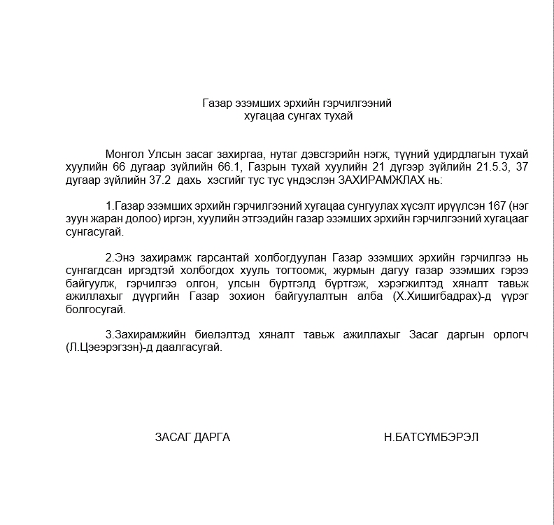 Газар эзэмших эрхийн гэрчилгээний хугацаа сунгах тухай