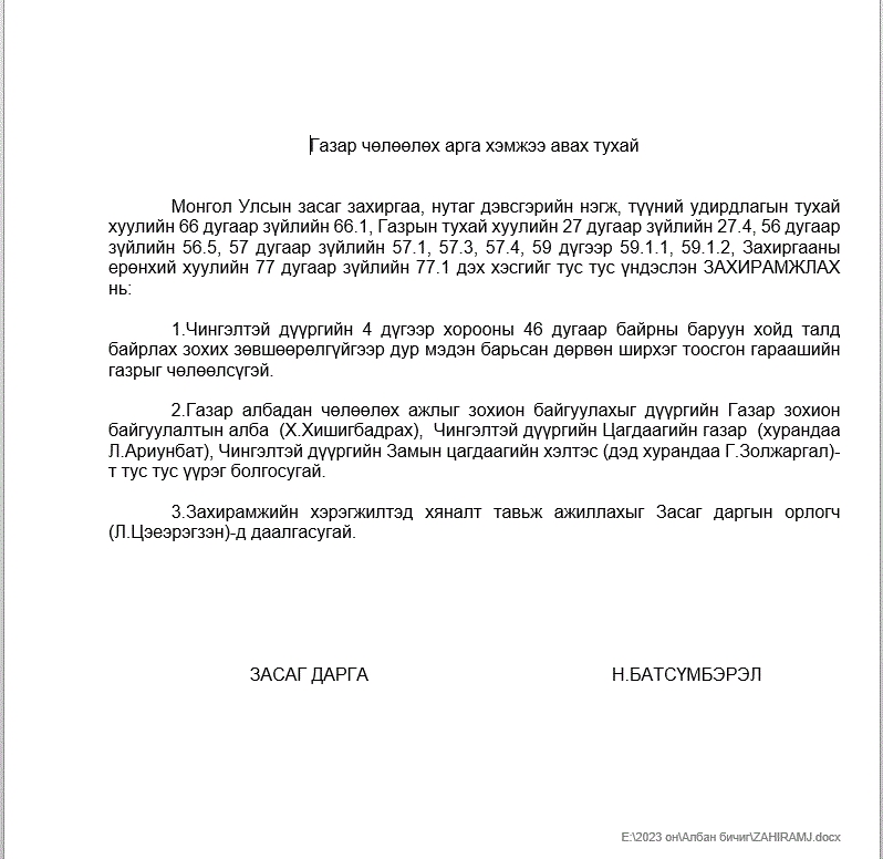 Газар чөлөөлөх арга хэмжээ авах тухай