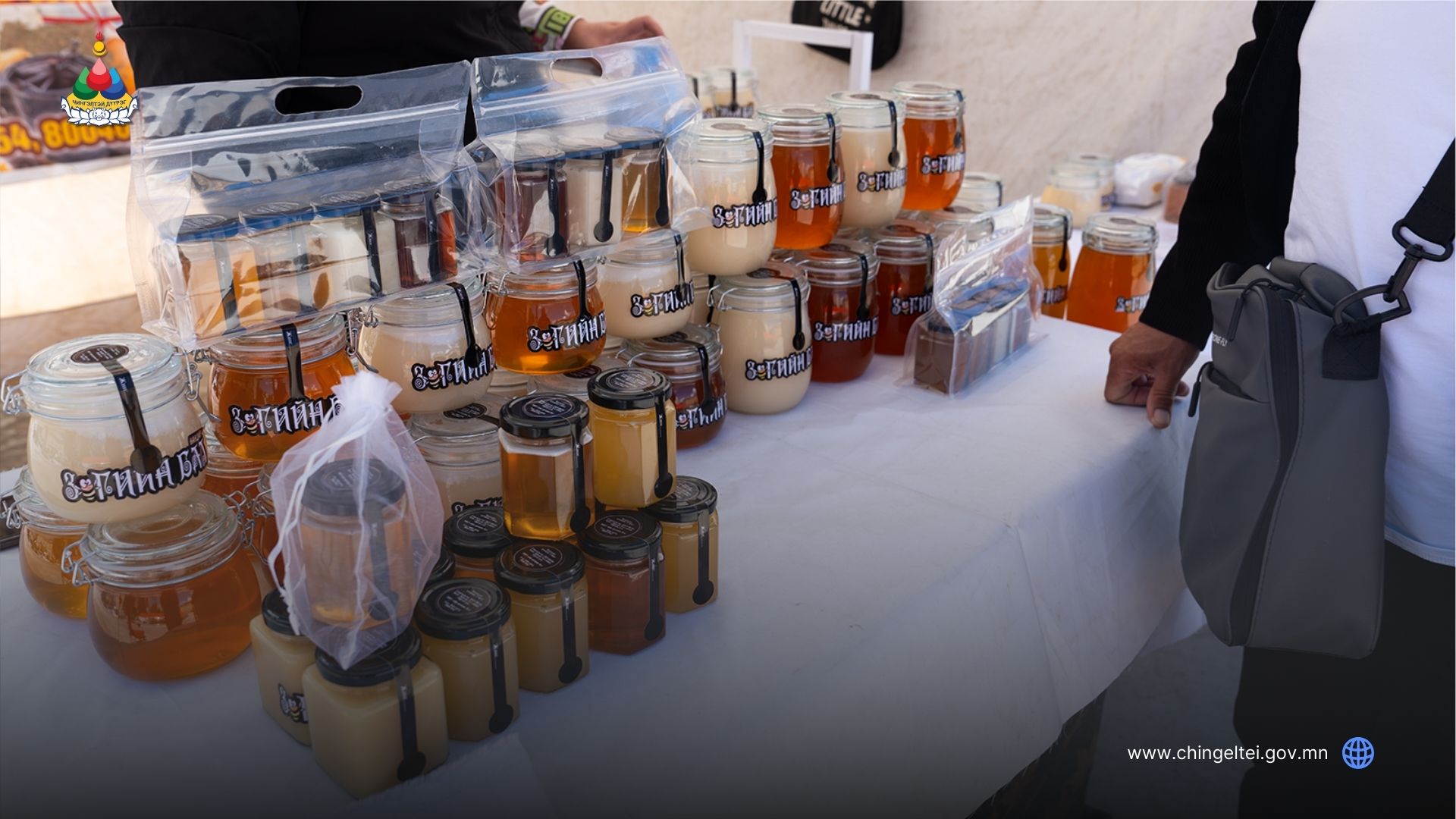 Үзэсгэлэн худалдаанд Чингэлтэй дүүргийн аж ахуй эрхлэгчдээс гадна Хөвсгөл, Дархан-Уул, Өмнөговь, Сэлэнгэ аймгийн газар тариалан, зөгийн үржүүлгийн аж ахуй эрхлэгчид оролцож, өөрсдийн шинэ ургац, зөгийн бал болон бусад бүтээгдэхүүнээ худалдаалж байна.