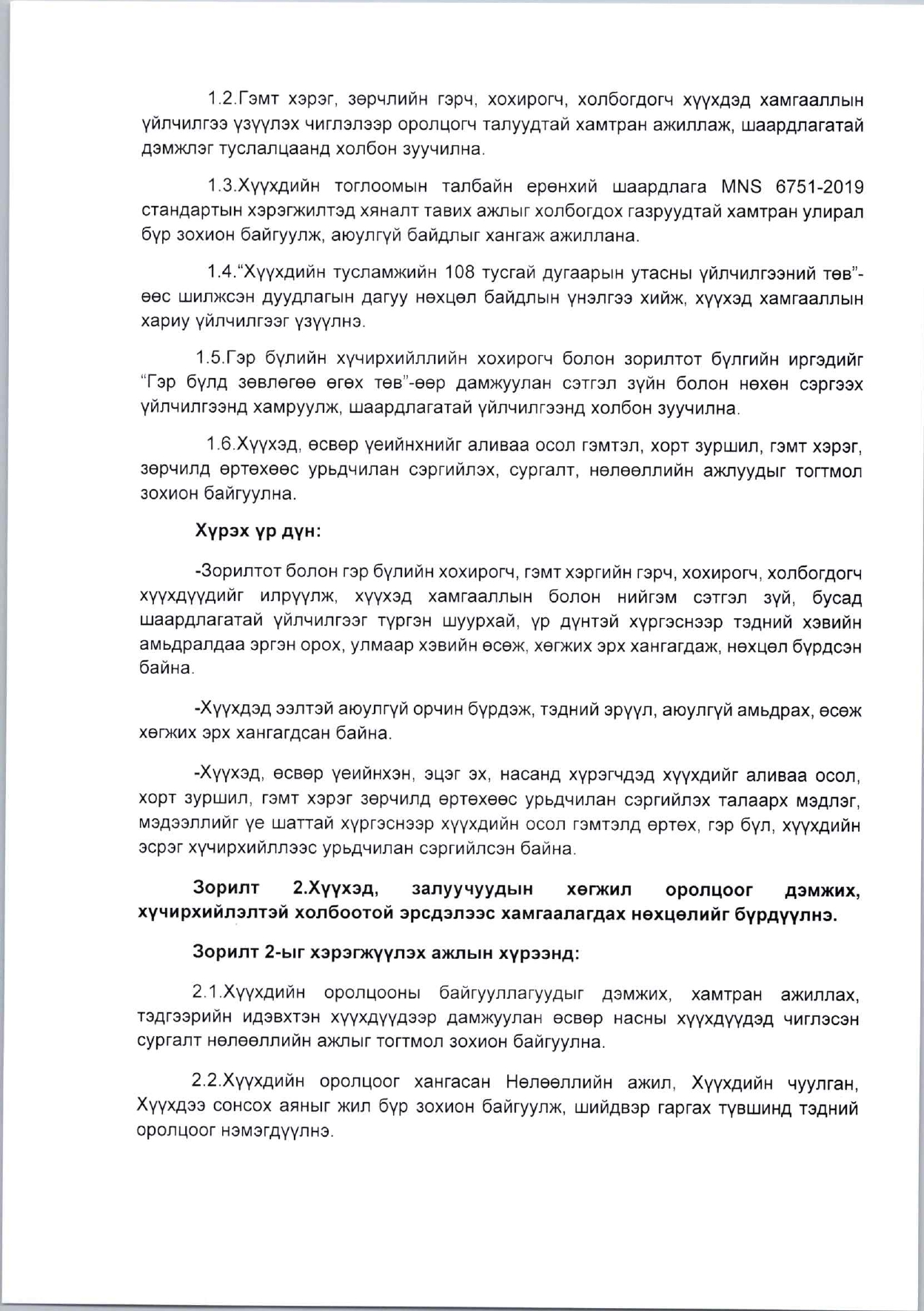“Энергийн менежмент” сэдвээр Чингэлтэй дүүргийн Засаг даргын Тамгын газрын нийт албан хаагчдад зориулсан сургалт зохион байгуулагдлаа10 сар 3. 16:36Засаг даргын Тамгын газар, нийслэлийн Ахмадын хороотой хамтран ахмад настнуудад зориулсан хүндэтгэлийн үйл ажиллагааг жил бүр зохион байгуулдаг уламжлалтай билээ10 сар 3. 13:59ДҮҮРГИЙН 20, 21 ДҮГЭЭР ХОРООНД 55 ГЭРЭЛТҮҮЛЭГ ШИНЭЭР СУУРИЛУУЛЛАА10 сар 3. 12:1818 ДУГААР ХОРООНЫ ОГЦОМ ЭРГЭЛТТЭЙ 7 БАЙРШИЛД АЮУЛГҮЙН ТОЛЬ СУУРИЛУУЛЛАА9 сар 26. 11:49ДҮҮРГИЙН ХЭМЖЭЭНД ШАХМАЛ ТҮЛШ БОРЛУУЛАХ 55 ЦЭГ АЖИЛЛАЖ БАЙНА9 сар 26. 11:45ЧИНГЭЛТЭЙ НЭГДСЭН ЭМНЭЛЭГТ ШИНЭ ТОНОГ ТӨХӨӨРӨМЖ ГАРДУУЛЛАА9 сар 26. 9:36Дүүргийн нэгдсэн эмнэлэгт урьдчилан сэргийлэх, эрт илрүүлэг, үзлэгийн тоног төхөөрөмжийн хүчин чадлыг нэмэгдүүлэх тоног төхөөрөмж гардуулан өглөө.9 сар 26. 9:3117 ДУГААР ХОРООНЫ ИРГЭДЭД ECO2 ДУЛААНЫ НАСОСНЫ ТАЛААР МЭДЭЭЛЭЛ ӨГЛӨӨ9 сар 25. 10:41ЧИНГЭЛТЭЙ ДҮҮРГИЙН ХӨДӨЛМӨРИЙН ЭРХИЙН МАРГААН ЗОХИЦУУЛАХ ГУРВАН ТАЛТ ХОРООНЫ ЭЭЛЖИТ ХУРАЛ БОЛЛОО9 сар 25. 10:34УГААРЫН ХИЙН ХОРДЛОГООС УРЬДЧИЛАН СЭРГИЙЛЭХ АЖИЛ ТОГТМОЛ ХИЙГДЭЖ БАЙНА9 сар 24. 11:45ЗДТГ-Т АРХИВЧ АЖИЛД АВНА9 сар 23. 14:39“НАС БОЛ ТОО” ЦЭНГЭЭНТ БҮЖГИЙН ТЭМЦЭЭН БОЛЛОО9 сар 22. 11:12ДҮҮРГИЙН 7 ДУГААР ХОРООНД ЯВГАН ЗАМЫН 200 М² ТАЛБАЙГ ШИНЭЧИЛЛЭЭ9 сар 16. 11:14ЧИНГЭЛТЭЙ ДҮҮРГИЙН 2, 3 ДУГААР ХОРООНД ЗАМ, ТАЛБАЙН ТОХИЖИЛТЫН АЖЛЫГ ХИЙЖ ГҮЙЦЭТГЭВ9 сар 16. 11:12ДҮҮРГИЙН УДИРДЛАГУУД 7, 21 ДҮГЭЭР ХОРООДОД ТУЛГАМДСАН АСУУДЛЫГ СОНСЛОО9 сар 16. 10:38АВТО ҮЙЛЧИЛГЭЭ ЭРХЛЭГЧДЭД ХУУЛЬ, СТАНДАРТЫН МЭДЛЭГ ОЛГОХ СУРГАЛТ ЗОХИОН БАЙГУУЛЛАА9 сар 15. 12:297-Р ХОРООНД ЯВГАН ХҮНИЙ ЗАМ ШИНЭЭР БАЙГУУЛЖ ЭХЭЛЛЭЭ9 сар 11. 12:17“УРТ ЦАГААН” ХУДАЛДАА ҮЙЛЧИЛГЭЭНИЙ ТӨВИЙН ОРОНД ДООРОО ЗОГСООЛТОЙ ЦЭЦЭРЛЭГТ ХҮРЭЭЛЭН АШИГЛАЛТАД ОРЛОО9 сар 8. 16:46ЧИНГЭЛТЭЙ ДҮҮРГИЙН 17 ДУГААР ХОРООНД ҮЕРИЙН ДАЛАН, ГҮҮРНИЙ ЗАСВАРЫН АЖИЛ ХИЙЛЭЭ9 сар 8. 16:149 ДҮГЭЭР ХОРООНЫ ДАМБЫН ГУДАМЖ, 16, 17, 18 ДУГААР ГУДАМЖИНД НИЙТ 110 М.КВ ТАЛБАЙН ЯВГАН ЗАМ, БОРДЮРЫГ ЗАСВАРЛАН ШИНЭЧИЛЛЭЭ9 сар 8. 10:07ДҮҮРГИЙН БОРОВСРОЛЫН САЛБАРЫН УДИРДАХ АЖИЛТНУУДЫН ШУУРХАЙ ХУРАЛ БОЛЛОО9 сар 5. 15:52ХОС БИЧГЭЭР АЛБАН ХЭРЭГ ХӨТЛӨЛТ, EDOC СИСТЕМИЙН АШИГЛАЛТЫН СУРГАЛТ БОЛЛОО8 сар 29. 15:20БӨМБӨГӨР ХУДАЛДААНЫ ТӨВИЙН УРД ТАЛЫН ЗАМЫГ ХОЁР УРСГАЛТАЙ БОЛГОЛОО8 сар 29. 9:54БАЯНБҮРДИЙН ТОЙРГИЙН БАРУУН ТАЛЫН ХУДГИЙН ЭРГЭН ТОЙРНЫГ ЦЭГЦЭЛЖ ТОХИЖУУЛАХ АЖИЛ ҮРГЭЛЖИЛЖ БАЙНА8 сар 28. 16:13ДҮҮРГИЙН ХЭМЖЭЭНД ГЭР ХОРООЛЛЫН ИЛ ЗАДГАЙ ХОГИЙН ЦЭГИЙГ БУУРУУЛАХ ШИНЭ АВТОМАТ ТӨХӨӨРӨМЖ НЭВТРҮҮЛЛЭЭ8 сар 28. 13:04