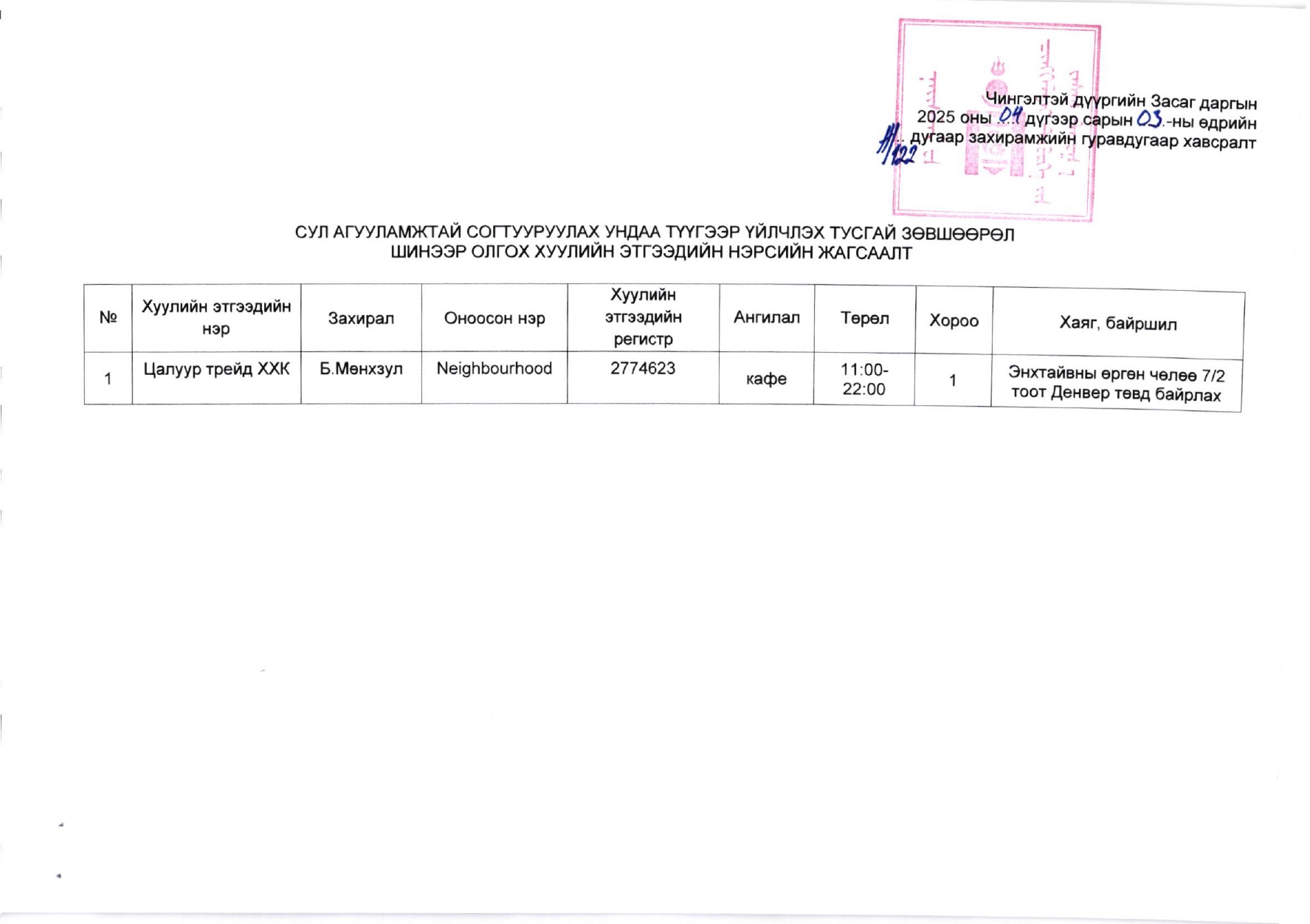 Монгол Улс, Улаанбаатар хот, Чингэлтэй дүүрэг, 4 дүгээр хороо, Ж.Самбуугийн гудамж-16, Нийслэлийн нутгийн захиргааны III байр.