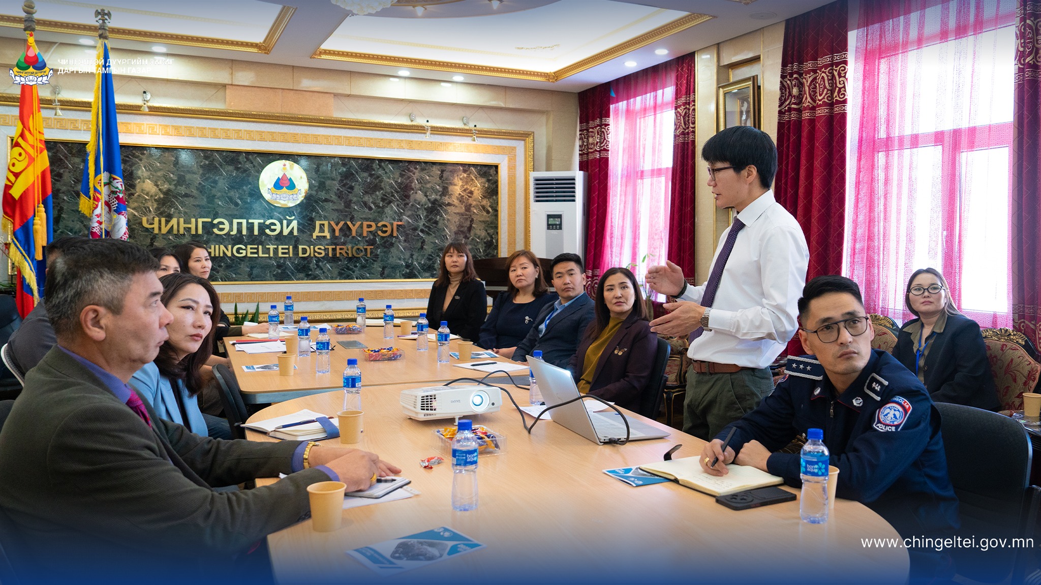 Уулзалтад Нийгмийн хамгааллын тусгай төвийн дарга Ш.Мөнхцэцэг болон албан хаагчид, дүүргийн Засаг даргын Тамгын газрын төлөөлөл, Цагдаагийн газар, Хүүхэд, гэр бүл хөгжил хамгааллын хэлтэс, Хөдөлмөр, халамжийн үйлчилгээний хэлтсийн төлөөлөл оролцлоо.