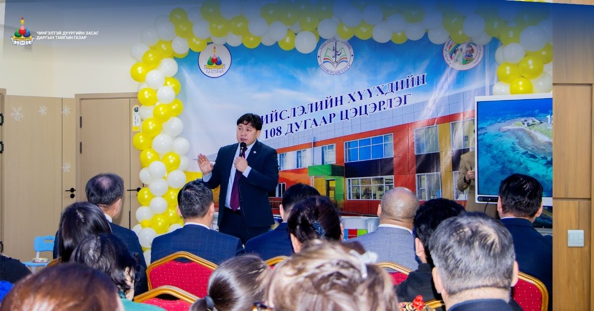 Барилгын насжилт хэтэрсэн 108 дугаар цэцэрлэгийг дахин төлөвлөлтөд хамруулж, стандартад нийцүүлэн шинэчлэн засварлалаа. Өмнө нь 4 бүлэгтэйгээр үйл ажиллагаа явуулж байсан бол хамран сургах тойргийн хүүхдийн хэрэгцээ, эрэлтэд нийцүүлэн 10 бүлэг болгон нэмэгдүүлэв.